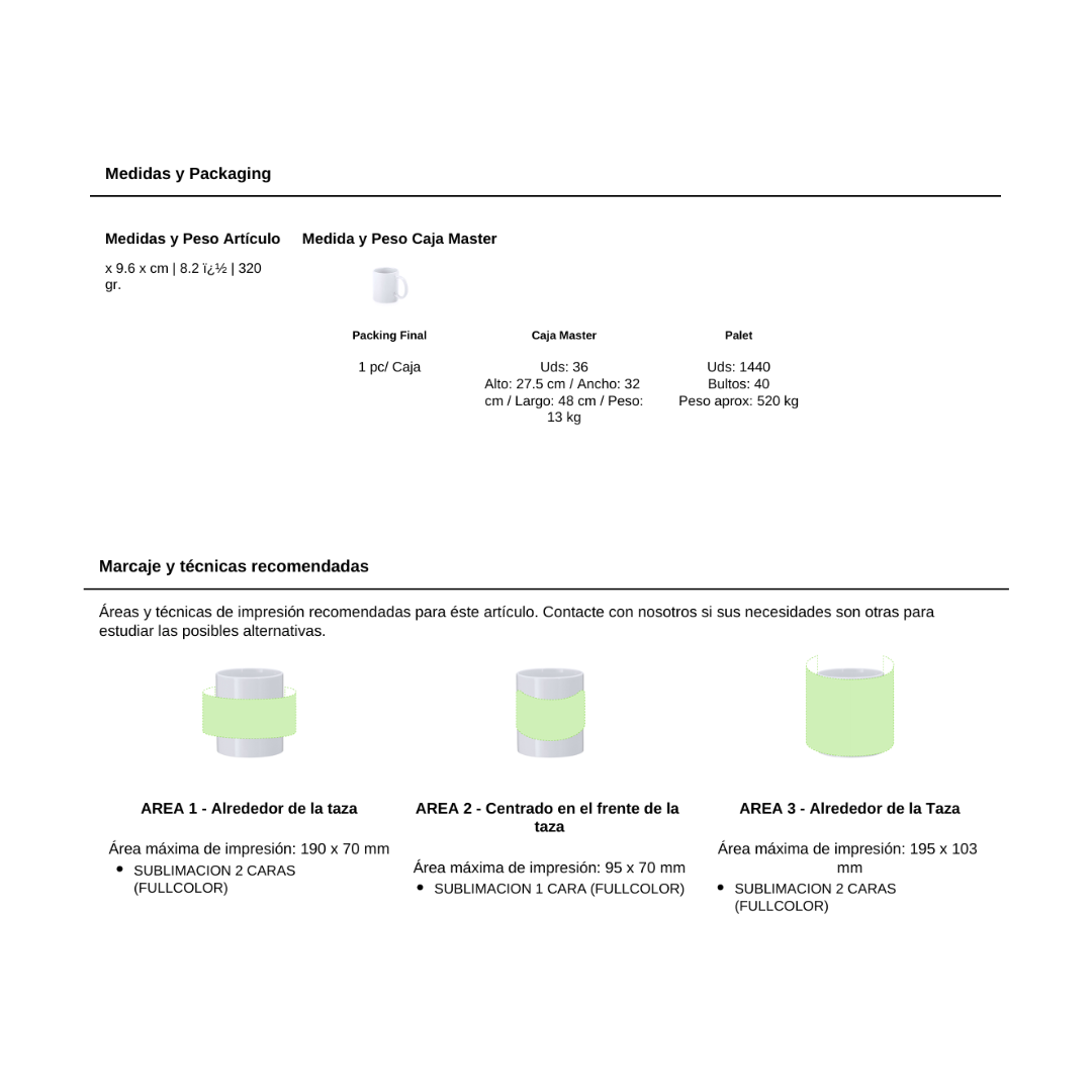 Fabricada en cerámica de alta calidad, tiene una capacidad de 250 ml y permite impresión a todo color con acabados duraderos.